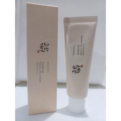 Beauty of Joseon Relief Sun is an organic sunscreen that has a lightweight texture, making it comfortable to use on the skin. Its broad-spectrum SPF 50+ PA++++ protects against UVA and UVB radiation. It is not sticky and leaves a dewy finish even after applying a generous amount multiple times. Despite being applied multiple times, it remains non-slip and sticky, akin to an airy cream that hydrates. It gives off an earthy glow without casting a white cast after absorption. It does not clump or become cakey, even when applied heavily before makeup.