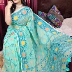 iশাড়ির ধরন - হাফ সিল্ক শাড়ি স্কিন প্রিন্ট কাজ করা