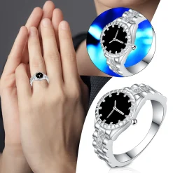 Vintage Zircon Watch-shape Ring Women Index Finger Ring Fashion Crystal Ring Creative Women Wedding Trendy Charm Luxury Jewelry