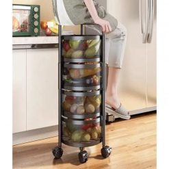 4 Layer 360 degree rotating vegetable shelf Kitchen floor multi-layer multi-function round vegetable basket storage rack