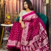 রেশমসিল্ক শাড়ী তে চুনডি ব্লকপ্রিন্ট ও ডলার বসানো কাজ করা।
